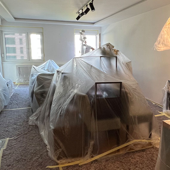 Bez pravilne zaštite podova, namještaja i otvora, bojanje često završava neredom. Profesionalno strojno bojanje uvijek uključuje temeljitu pripremu i zaštitu prostora.